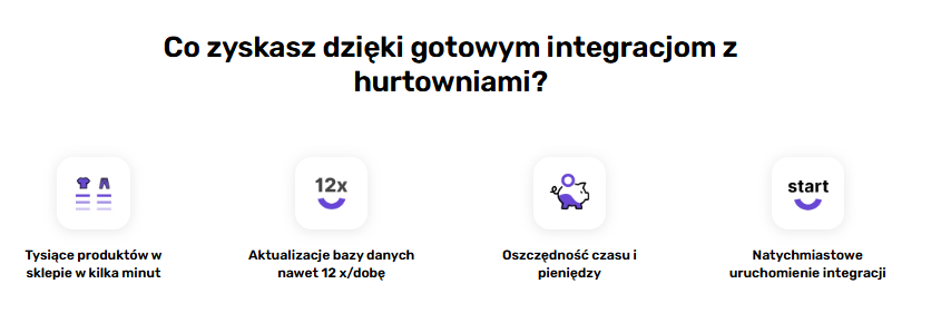 • Dropshipping – jeśli Twój sklep działa w tym modelu, integracja z hurtownią jest podstawą. Prowadzenie sprzedaży w dropshippingu bez integracji jest wręcz niemożliwe. To właśnie ona odpowiada za zsynchronizowanie stanów magazynowych, automatyczne dodawanie nowych produktów i obsługę zamówień. Sprawdź od razu informacje o integracji z hurtownią dropshippingową
