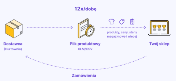 System sprawdza plik produktowy w ustalonych odstępach (np. co 2, 4 lub 12 godzin) i aktualizuje wszystkie zmiany. Dzięki temu oferta w Twoim sklepie zawsze odpowiada faktycznej dostępności w hurtowni, a ryzyko sprzedaży niedostępnych produktów znika.