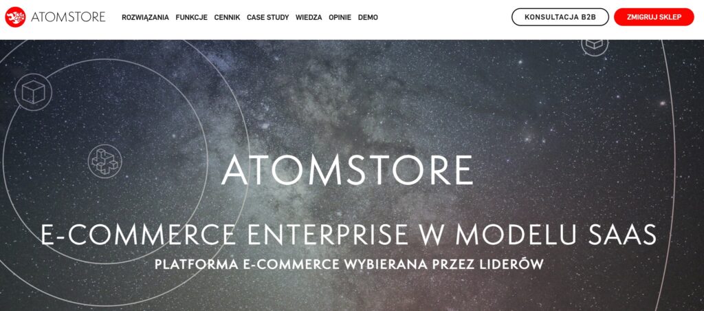 AtomStore SaaS / Enterprise omnichannel, duże sklepy ERP, CRM, marketplace, skalowalność wysokie koszty, większa złożoność średni / wysoki koszt wdrożenia od 5 990 zł + dzierżawa systemu od 499 zł/msc