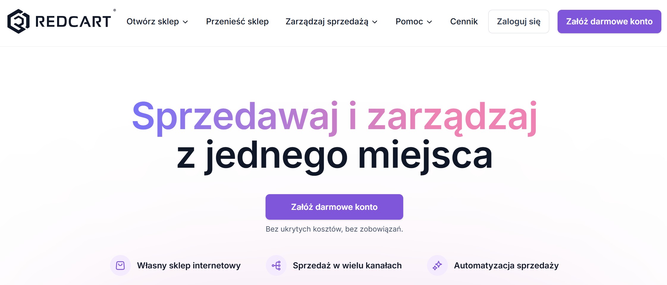 RedCart SaaS start, testy freemium, niski próg wejścia ograniczona elastyczność, płatne funkcje niski od 0 zł / od ~166 zł/m