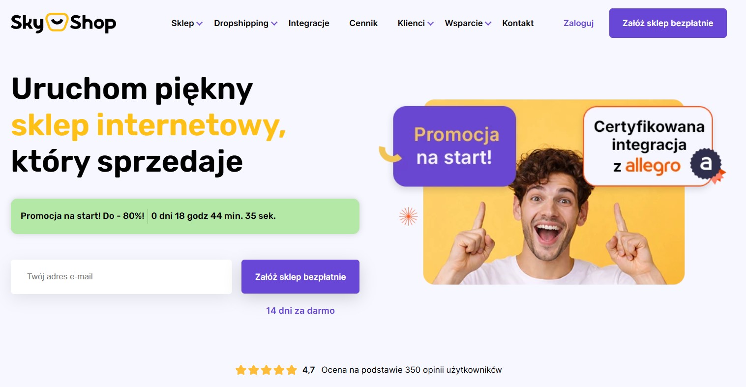 Sky-Shop SaaS małe i średnie sklepy, dropshipping, Allegro szybki start, integracje, dropshipping, sprzedaż wielokanałowa mniejsza elastyczność niż open source niski od ~99 zł/m